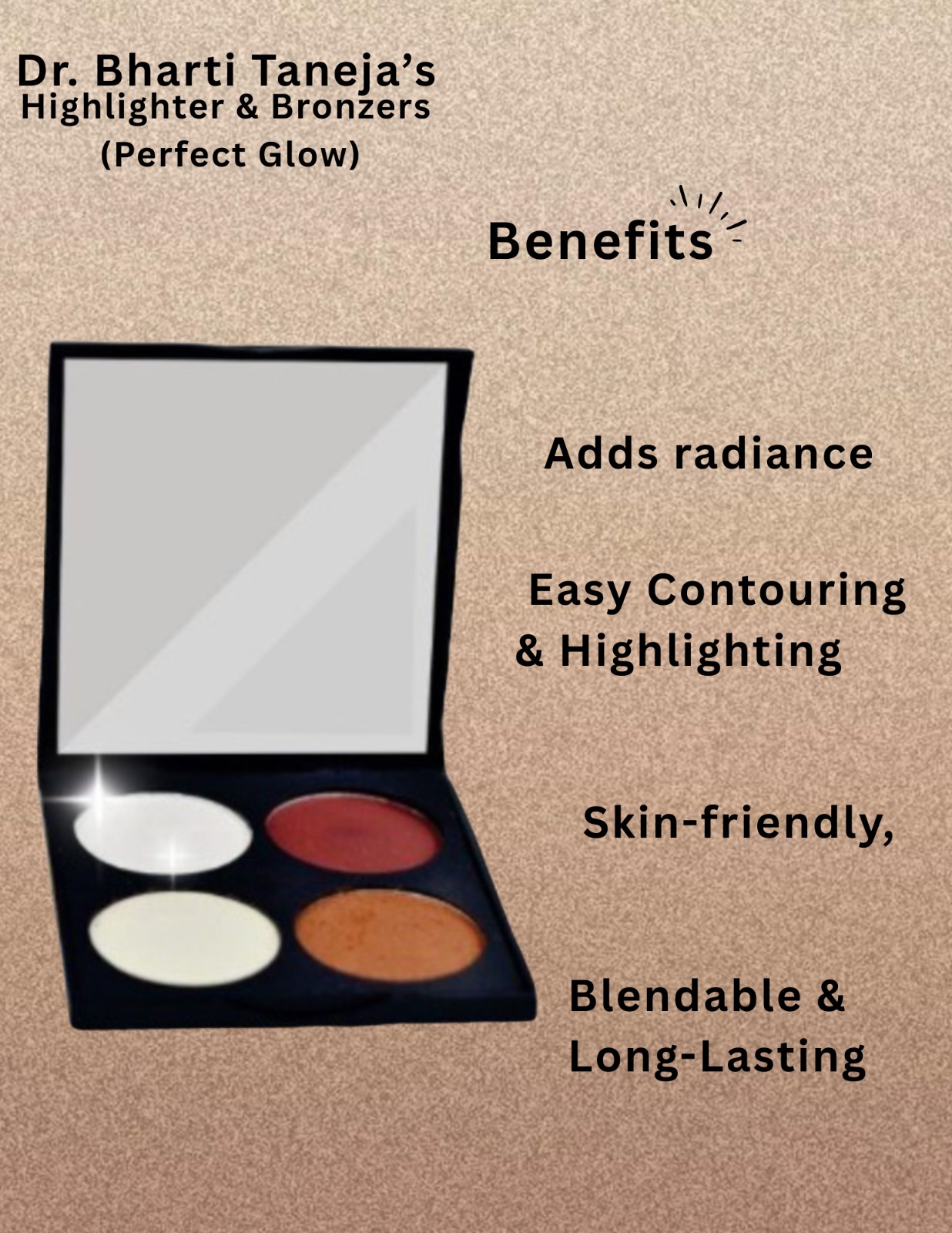 Enhance your natural beauty with Dr. Bharti Taneja Highlighter & Bronzers (Perfect Glow), specially crafted to give your face a radiant glow and flawless definition. This versatile set allows you to highlight, contour, and bronze effortlessly, creating a sculpted, luminous look suitable for all skin types.