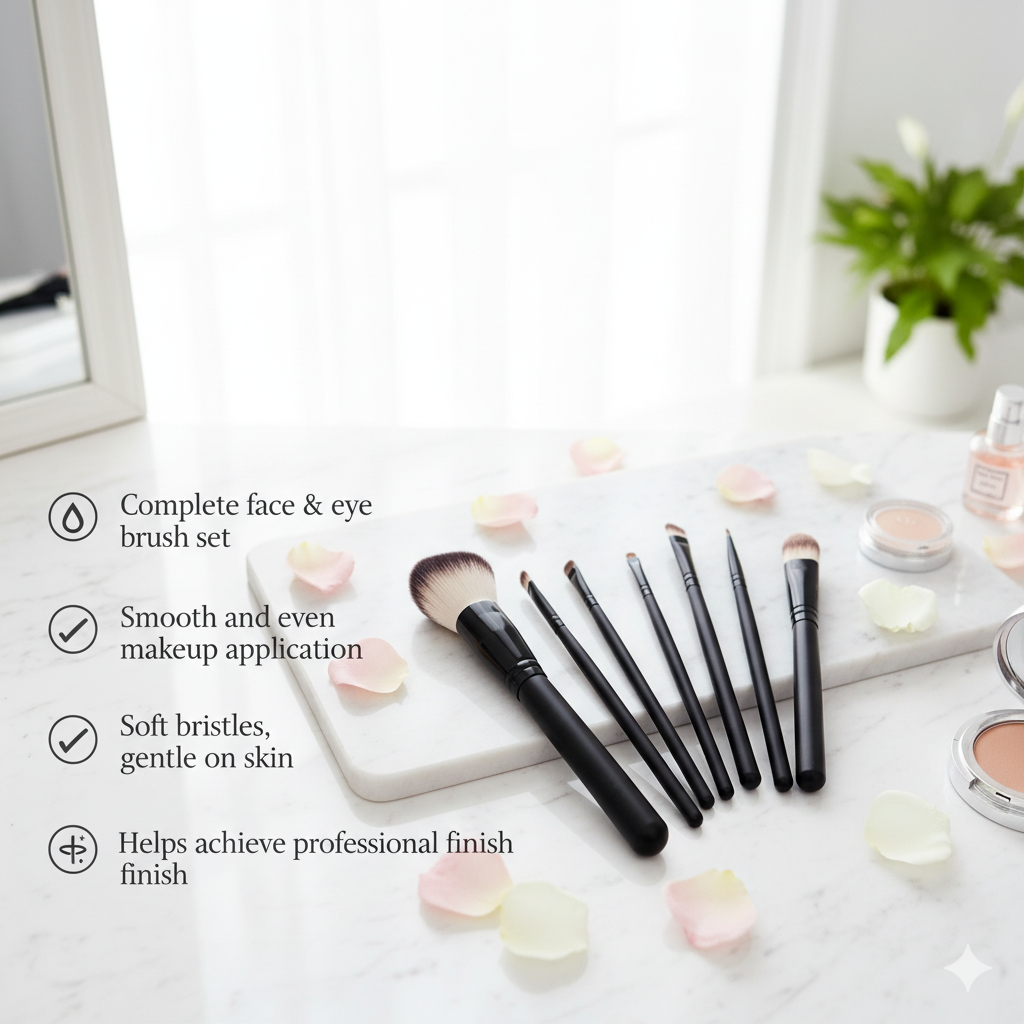 ✅ Complete 7in1 Set – Includes all essential brushes for face and eyes.