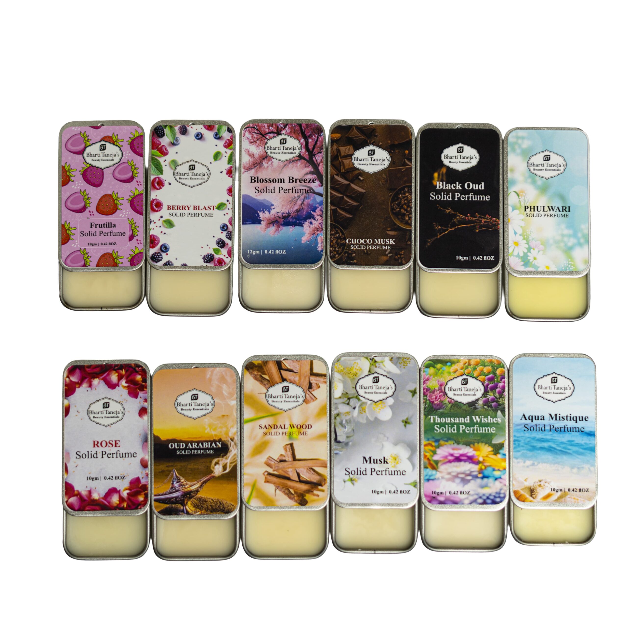 This fragrance is part of the Bharti Taneja Solid Perfume Collection, also featuring signature blends like Rose, Sandalwood, and Berry Blast.